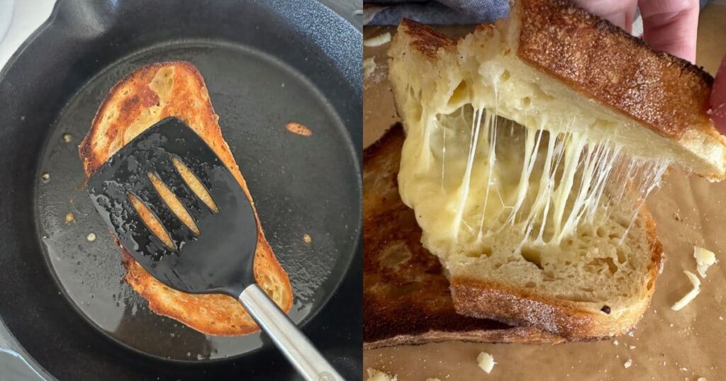 Elevate your grilled cheese game with the best Sourdough Grilled Cheese Sandwich recipe, featuring tangy sourdough bread toasted to golden perfection in a cast iron skillet for irresistible flavor and texture.