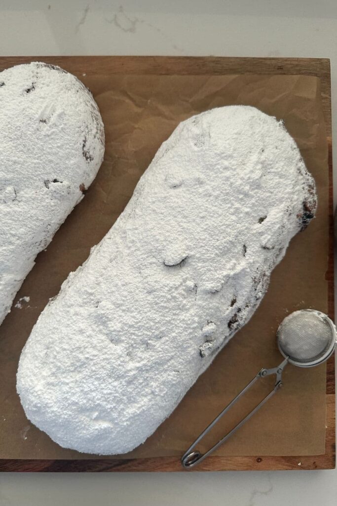 - Large container for dusting the stollen in powdered sugar after baking