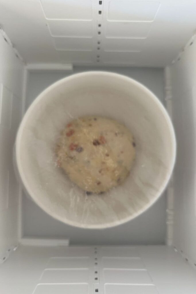 - When you're happy that all the fruit has been incorporated into the dough, pop the dough back into the bowl and cover. Allow to bulk ferment at room temperature until the dough has risen around 50%.Don't worry about the dough containing butter milk, egg, milk and butter. It's perfectly safe to leave it out at room temperature.