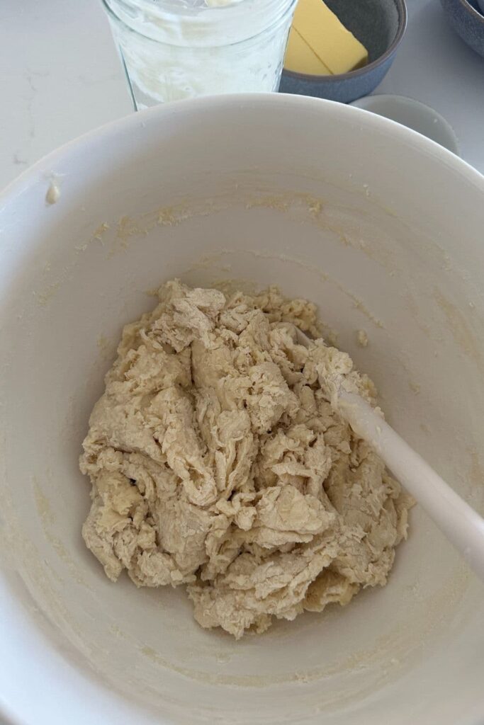 - Once the butter is fully incorporated in the dough, allow the dough to rest for around 10 minutes (you can leave it on the counter, just pop the bowl over the top so it doesn't dry out).