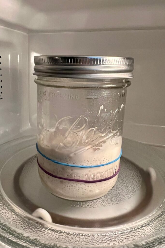 - Keep an eye on your starter as it rises and place a mark after 2 hours, 4 hours and then after 6 hours.