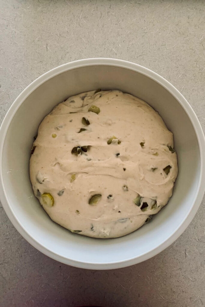 But if you want to get technical, bulk fermentation actually begins as soon as you add your starter to the flour and water.