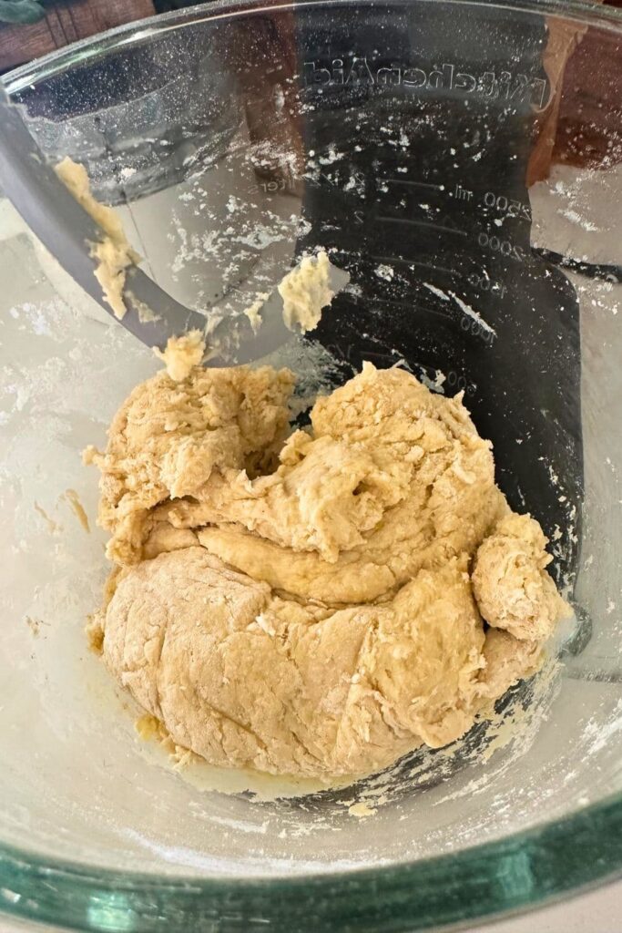 Once the dough has sat for a little while, add the butter and salt and use the stand mixer to knead it really well. You want the butter to mix all the way through and the dough to become very soft and elastic. Depending on the type of mixer you use, this could take 3 minutes, it could take 20 minutes.
