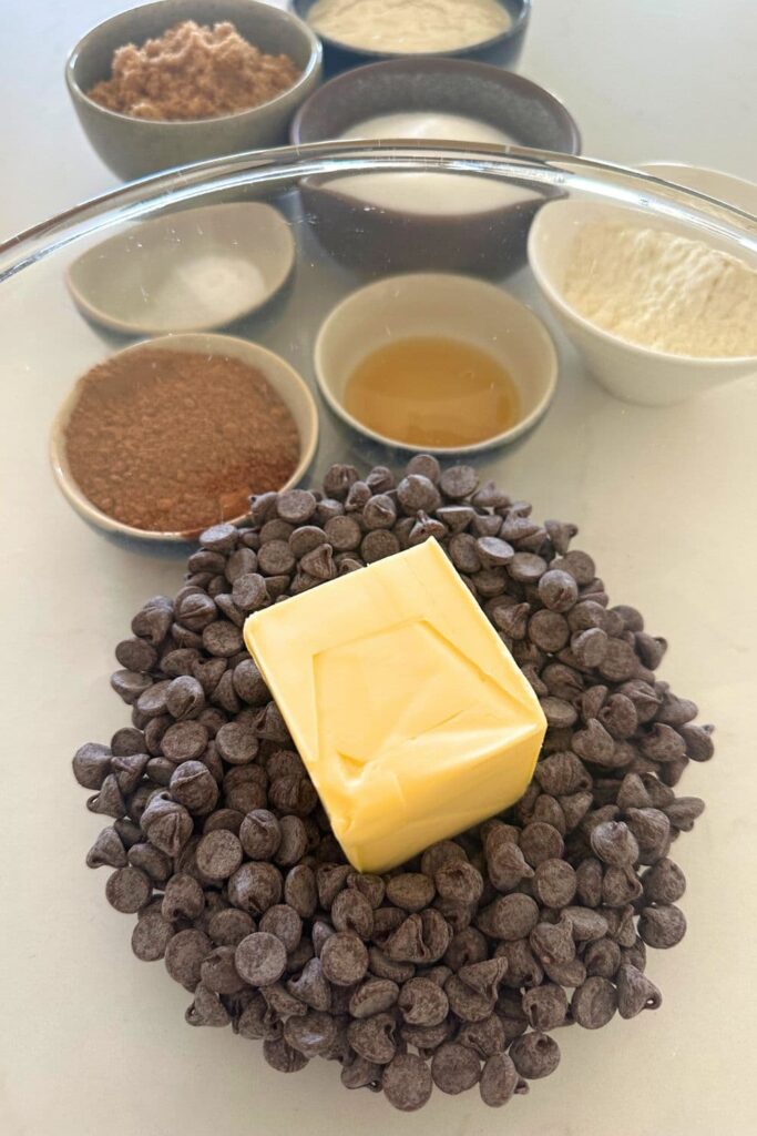 I've chosen to use semi-sweet chocolate chips because they melt really well for this recipe and then when you add the extra chocolate chips at the end of the recipe, these create little pockets of chocolate that will surprise you when you indulge!