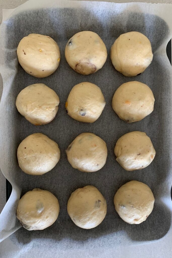 It's really important when making rolls to ensure they are all the same size so that they cook evenly. Using a scale is the best way to ensure uniformity when making sourdough buns and rolls.