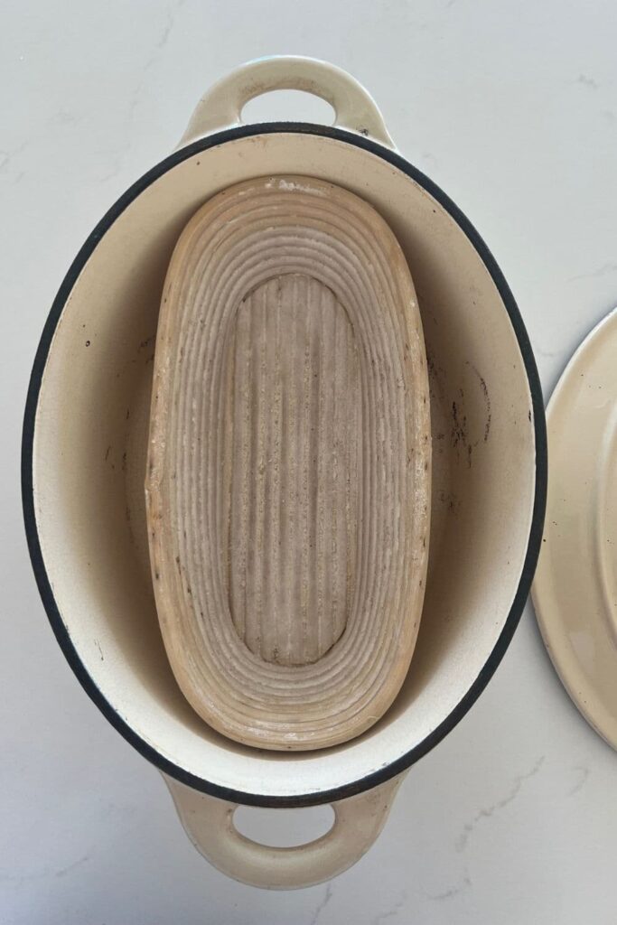 - What size banneton do you use (and what size loaf will you be cooking). When choosing your Dutch Oven, make sure your banneton will fit inside with around 1 inch around the edges. This will mean your dough will fit!
