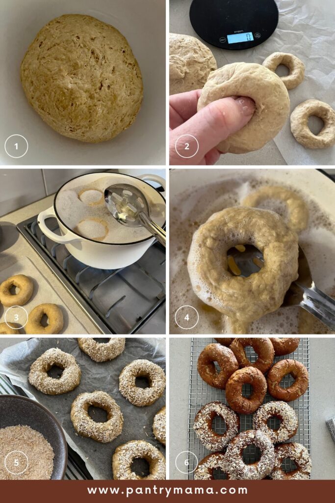 You will find a step by step guide to making sourdough rye bagel dough from scratch and rolling them into beautifully shaped bagels.