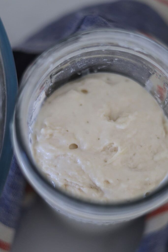 Once you're more familiar with the process - and the temperature of your home - you will be able to do overnight ferments. You will know your dough is ready to move to the next stage when it is just under double in size. It will be fairly wobbly and full of bubbles. You should be able to see large air bubbles under the surface of the dough.