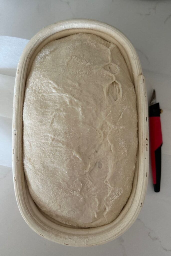 You will need a proofing basket or banneton to put your dough into. If you do not have a banneton, then a bowl or basket lined with a floured tea towel is perfectly fine. Make sure your bowl isn't too big though, you want your dough to retain some shape.