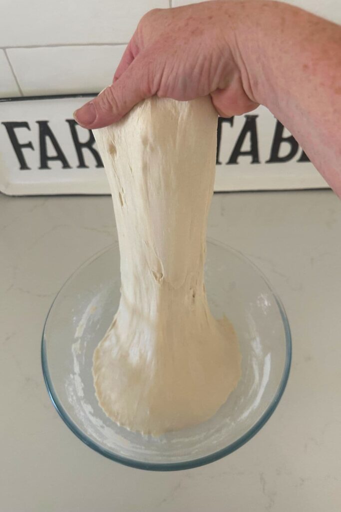 For each set, stretch the dough up and over itself 4 times. Leave around 15 minutes in between each set. Again you do not have to be exact with time, but you need to do at least 4 sets over 2 hours.
