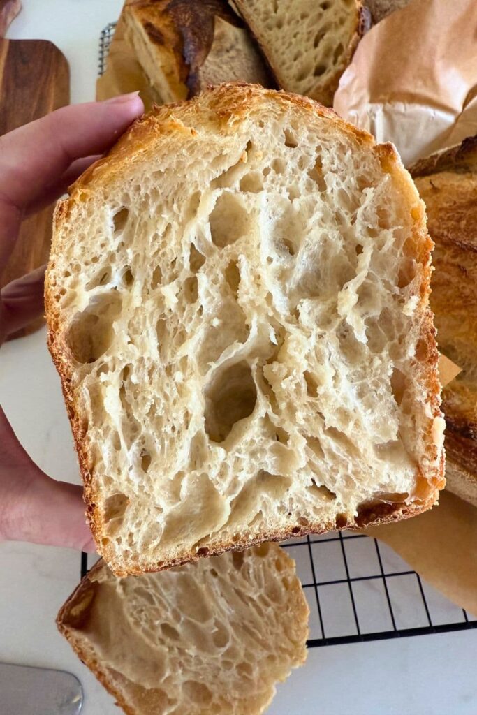 This sourdough loaf, baked from frozen in a loaf pan, turned out amazing! It was definitely my favorite from this whole experiment and one that is easy to recreate. I highly recommend this one if you want to bake sourdough from frozen dough. The crust on this one was just incredible, lovely and crispy with a soft crumb inside. Perfect for making toast!