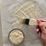 - Using a pastry brush, paint your sourdough starter all over the parchment paper ensuring it's not too thick. You can use a spoon if you don't have a pastry brush, but try to get it nice and thin.
