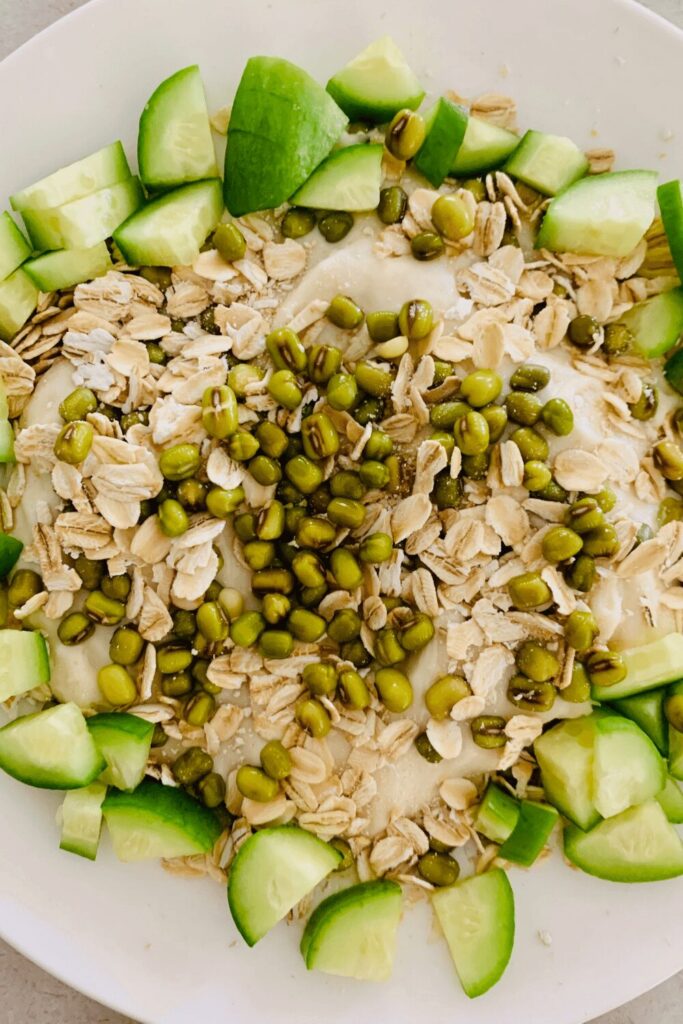 You could also sprinkle with rolled oats, seeds, wheat berries, soaked & sprouted seeds and chopped fruit & veggies. You can see how I've done this in the photo below (I've used rolled oats, soaked mung beans and cucumber pieces). I just use what I have on hand that day.