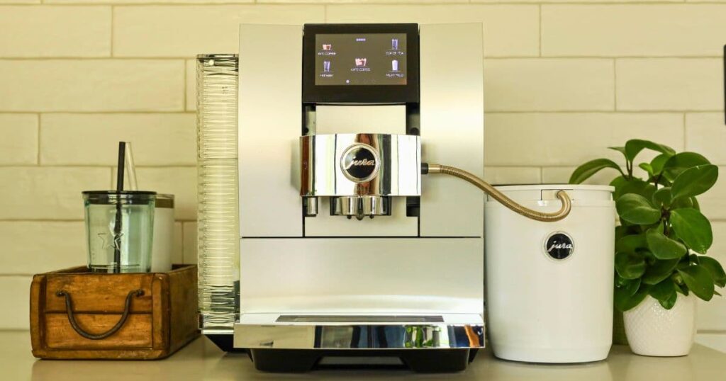 My coffee machine is a Jura Z10 Diamond White. We also have the optional Jura Cool Control Milk Container that keeps 1L of milk cold for extra convenience. This is a life saver when I'm in the kitchen all day as I can make coffee with just the touch of a button! I've got my favorite flat white programmed in with a double shot of espresso! I also use the coffee machine when I'm making my favorite loaf of sourdough with coffee and maple infused dates!
