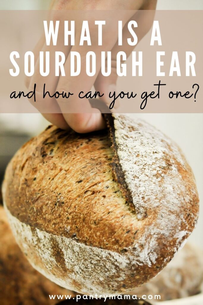 A sourdough ear is the extra crunchy flap of crust that forms on your sourdough bread while baking.
