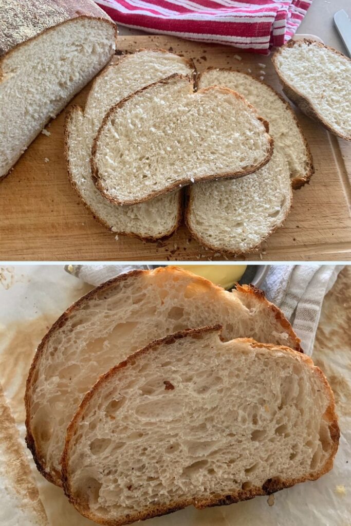 Sourdough on the other hand has a more chewy crust and a more open crumb.