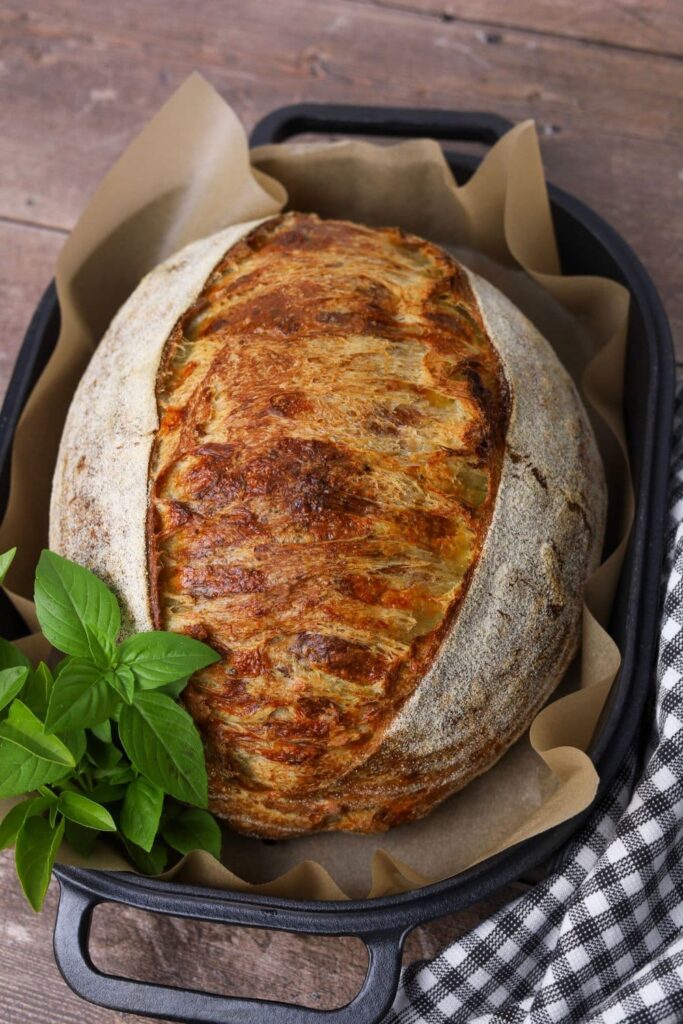 Summer Flavors - if you love the summer flavors and aromas of basil then this is one loaf of sourdough you just have to try! It's a fun twist on the classic Italian herb and cheese sourdough bread!