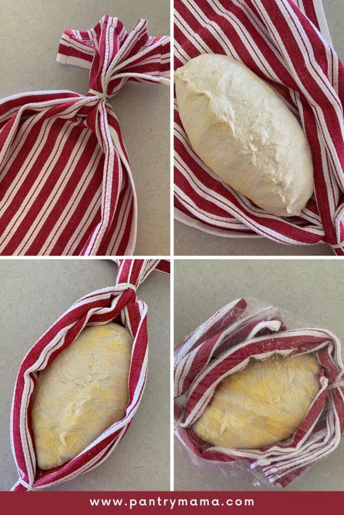 Using this method, I highly recommend rubbing the tea towel with rice flour or coating your dough in corn meal or something similar to stop it sticking.