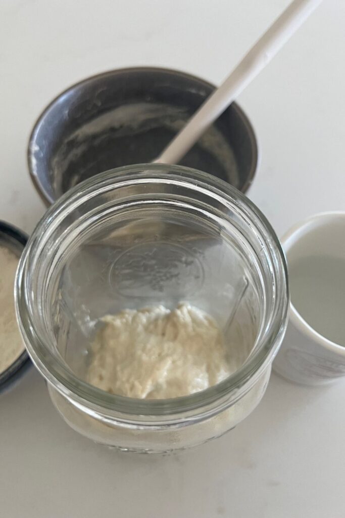 - mix your sourdough starter in a clean bowl before transferring back into your jar