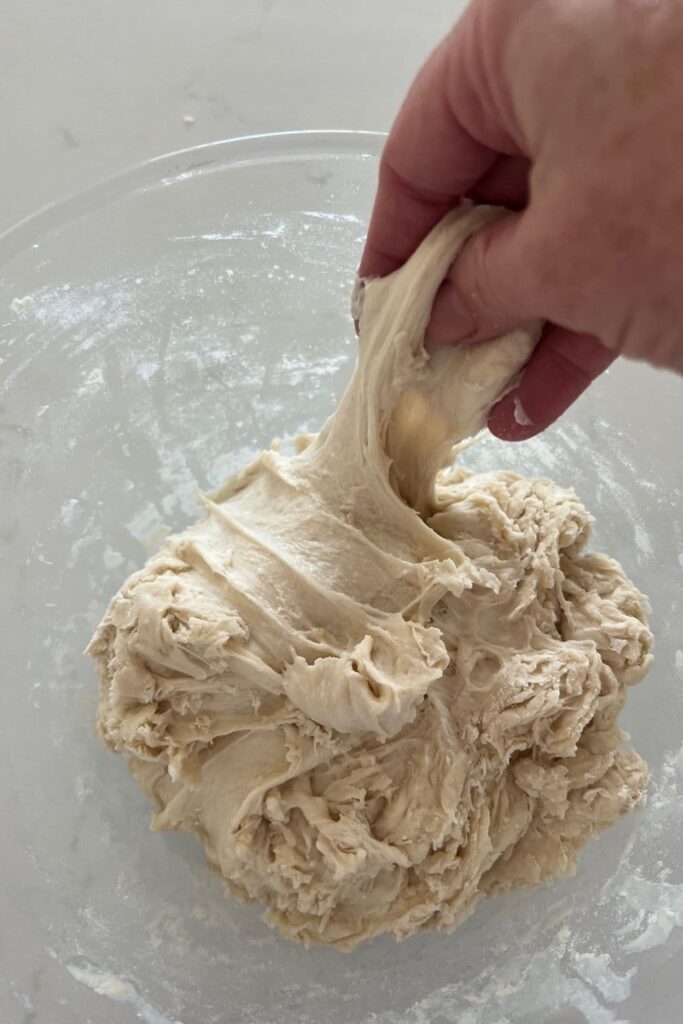 For each set, stretch the dough up and over itself 4 times. Leave around 15 minutes in between each set. Again you do not have to be exact with time, but you need to do at least 4 sets over 2 hours.