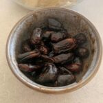 - Soak dried and pitted dates in hot espresso and maple syrup.