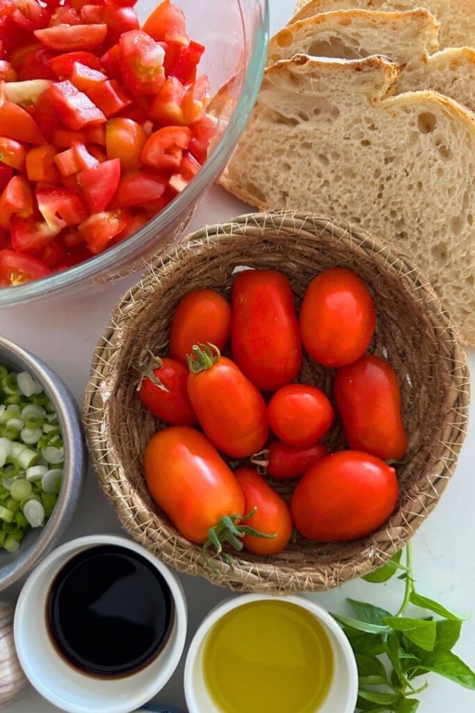 The most important thing when choosing tomatoes for your sourdough bruschetta is that you choose fresh tomatoes. They need to be ripe and deliciously red.