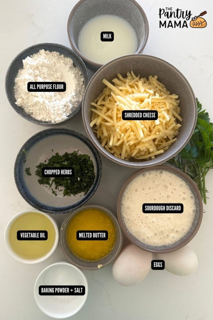 One thing to note is that you do want to avoid using older discard in these muffins as it can create an unpleasant flavor and overpower the golden cheesiness.