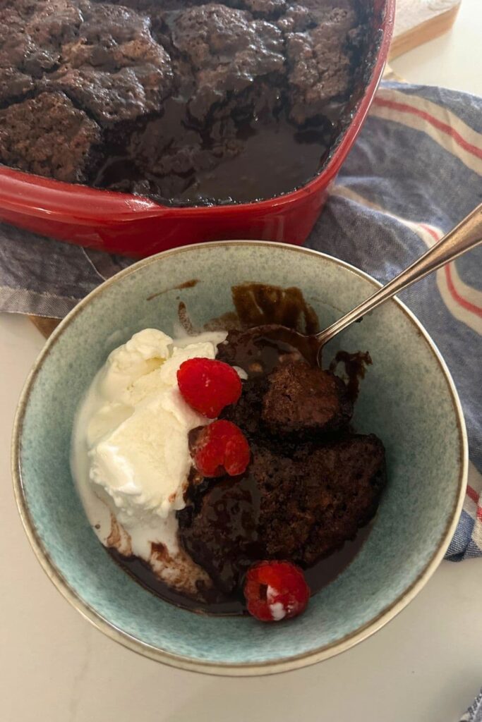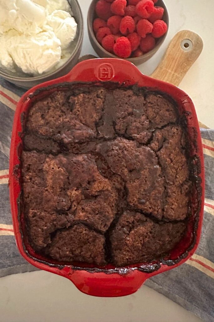 Depending on where you come from, you might know this recipe as a chocolate cobbler, or a chocolate self saucing pudding. When I was a little girl, my mother would make a chocolate self saucing pudding from a box. It was one of my favorite desserts, served with a huge scoop of vanilla ice cream of course!