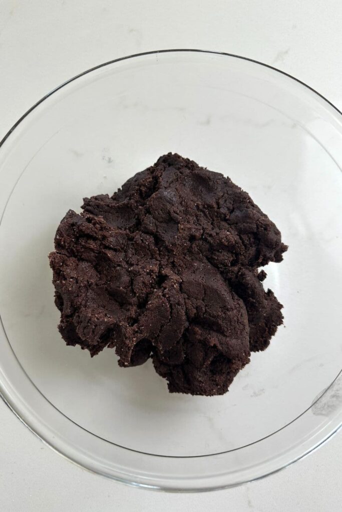 Place the sourdough chocolate sandwich cookie dough into a bowl and place into the fridge for around 2 hours (it can stay in the fridge for up to 48 hours though). This gives your sourdough starter time to work its magic.