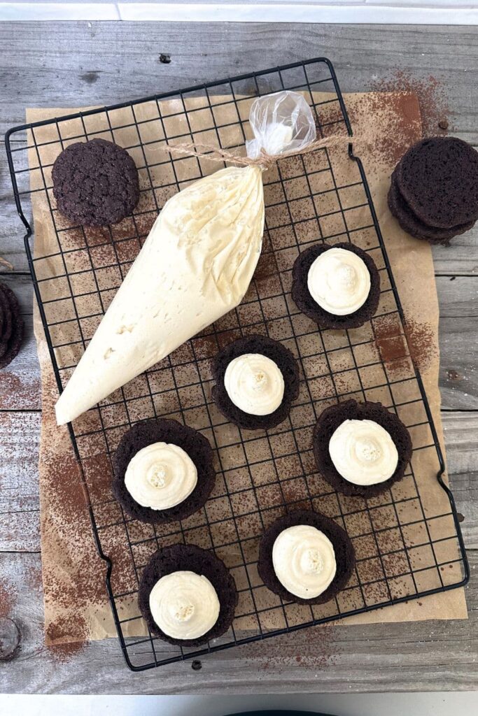 - Spoon the filling into a piping bag and set aside until the cookies are completely cool.