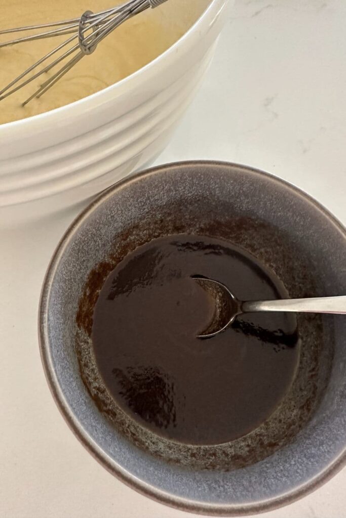- Mix together brown sugar, melted butter and cinnamon til it's smooth and fairly runny. Pour into a piping bag and set aside until you've made the batter. (You don't have to pipe it, you can just use a spoon and drizzle if you prefer).