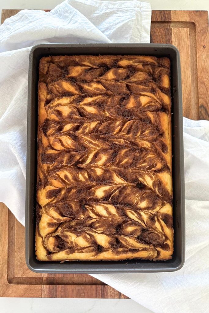 Sourdough Cinnamon Roll Pancakes [baked in a sheet pan]