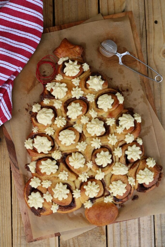 - If you want to pipe the vanilla cream cheese frosting on like I've done, ensure the sourdough cinnamon roll Christmas Tree has cooled down sufficiently first, otherwise the frosting won't stay formed. Of course if you prefer you can drizzle or spoon the icing on too - and then it's not so bad if the rolls are still warm.
