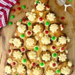 For a little extra Christmas cheer, use some red and green chocolate buttons. If you are going to add chocolate buttons for some color, I don't recommend adding these til just before you serve the sourdough cinnamon rolls as the color can bleed into the frosting.