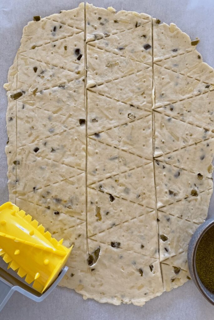 Cutting Sourdough Crackers with Jalapeño & Cheese