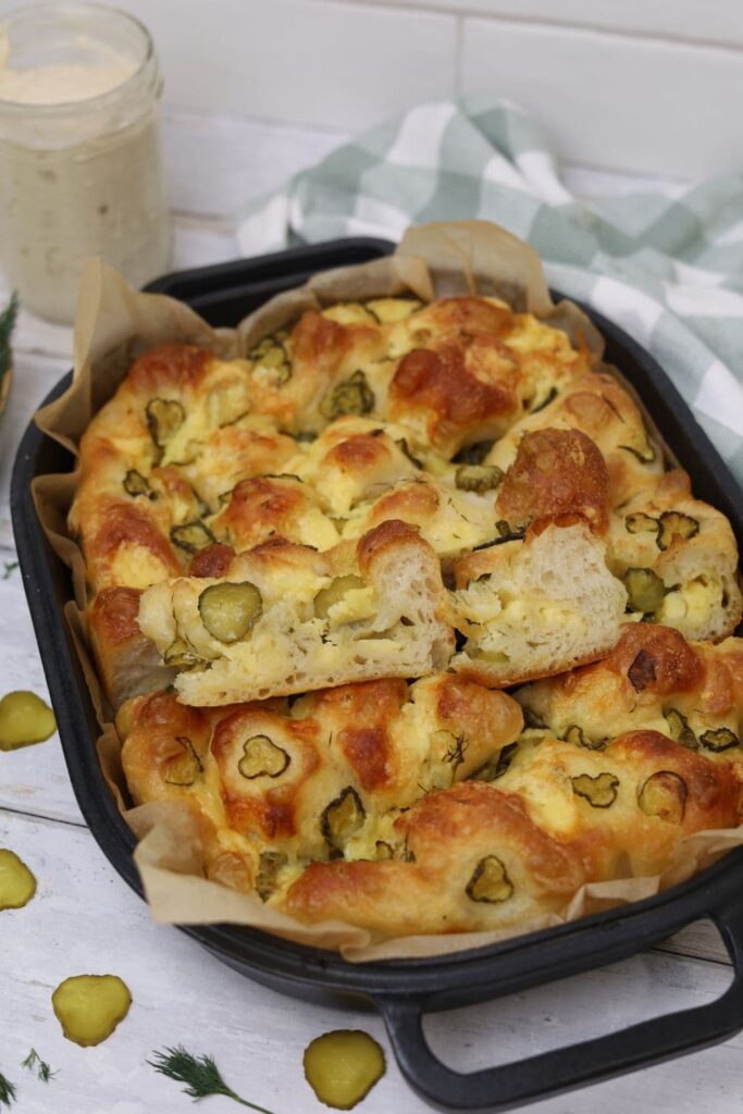 Sourdough Dill Pickle Cheddar Focaccia Bread