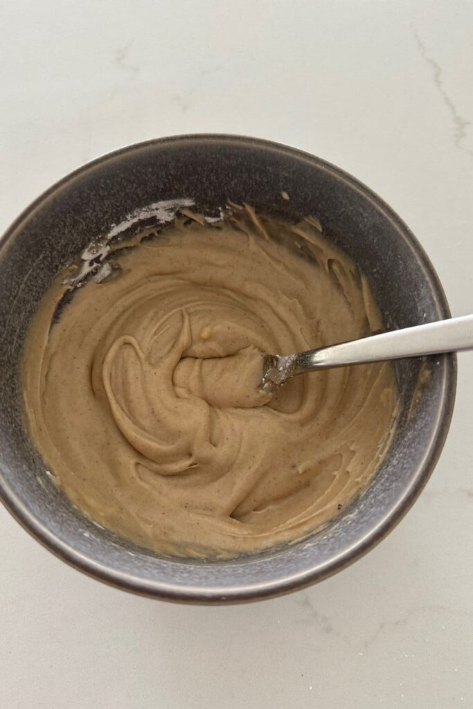 - Add glaze ingredients to a small bowl and whisk together using a fork until a glaze is formed. You may need to add additional maple syrup if the glaze is too thick (you want it runny, but not too runny so you can still pipe it).