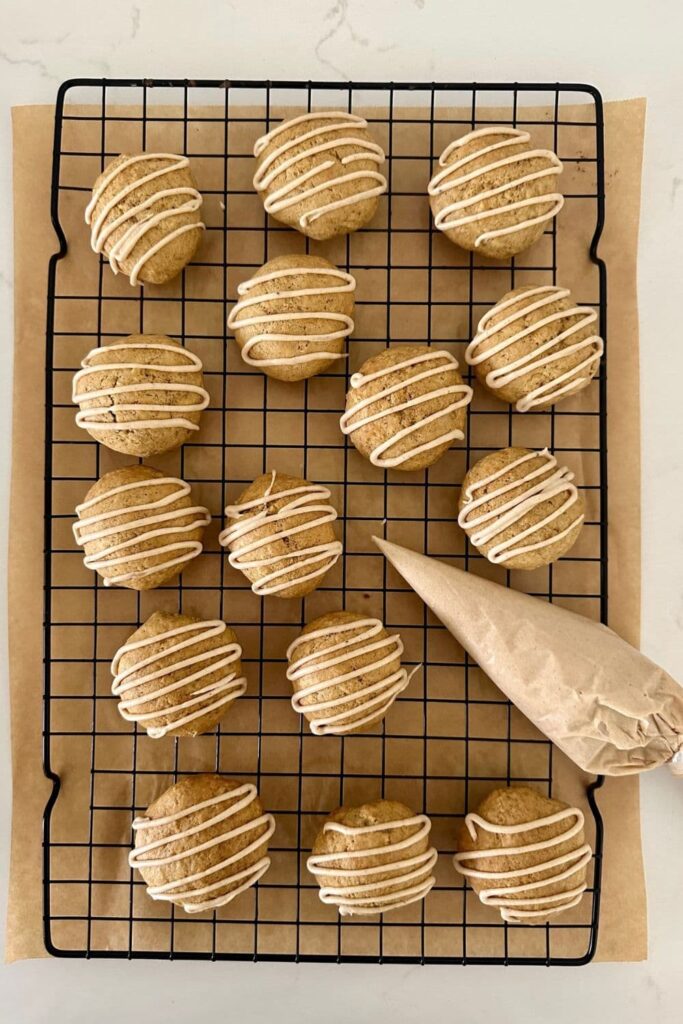 - Add to a piping bag and drizzle over the sourdough pumpkin spice cookies. Allow to set before serving.