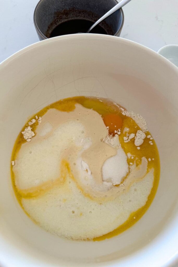 - Add the Sourdough Starter, sugar, milk and flour together in a bowl and mix until well combined. Leave it on the counter overnight (it's perfectly safe to leave the milk overnight, however if you're worried it can go in the fridge for up to 24 hours).