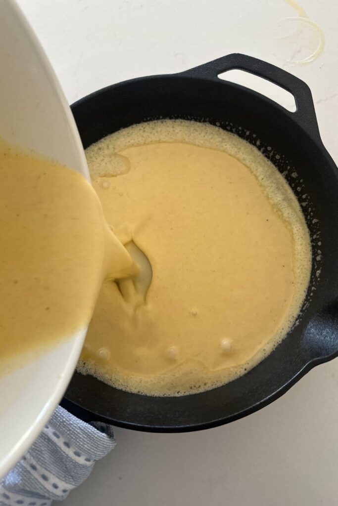 - Allow the batter to sit on the counter until the cast iron skillet is at temperature.