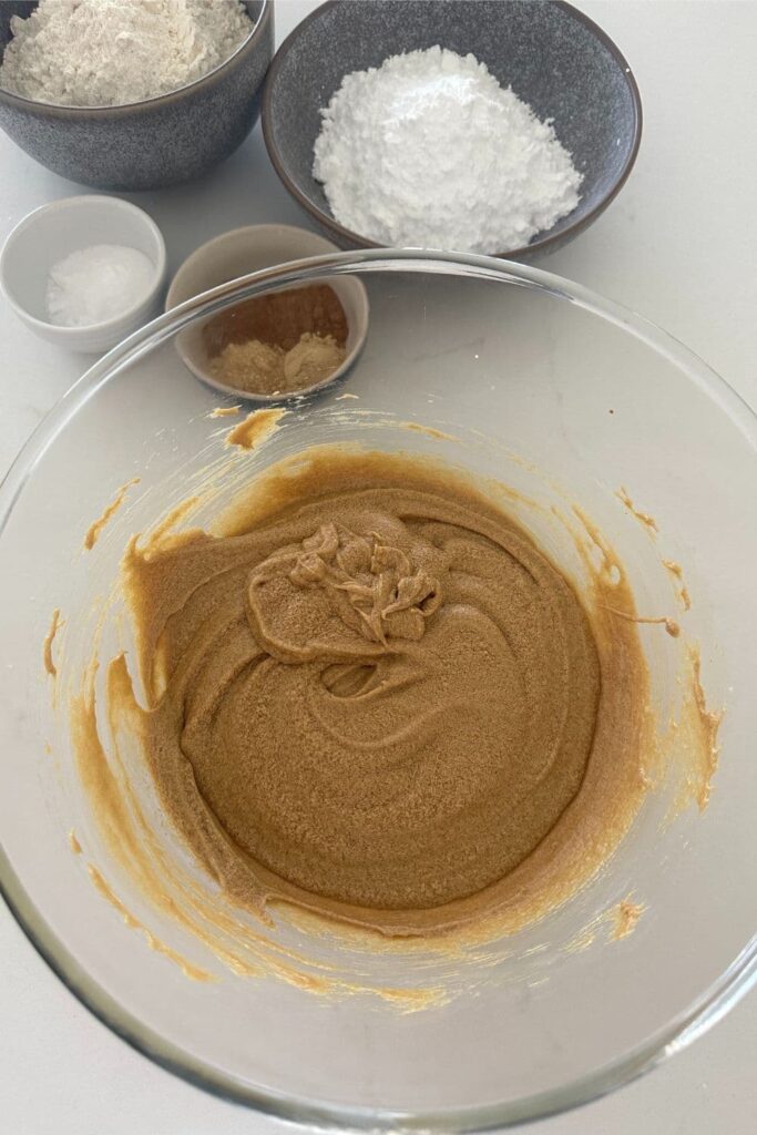 In a medium-sized bowl, cream the butter and brown sugar together until well combined. The brown sugar should be mostly dissolved at this point. You can just use a whisk for this if you want to keep things simple.