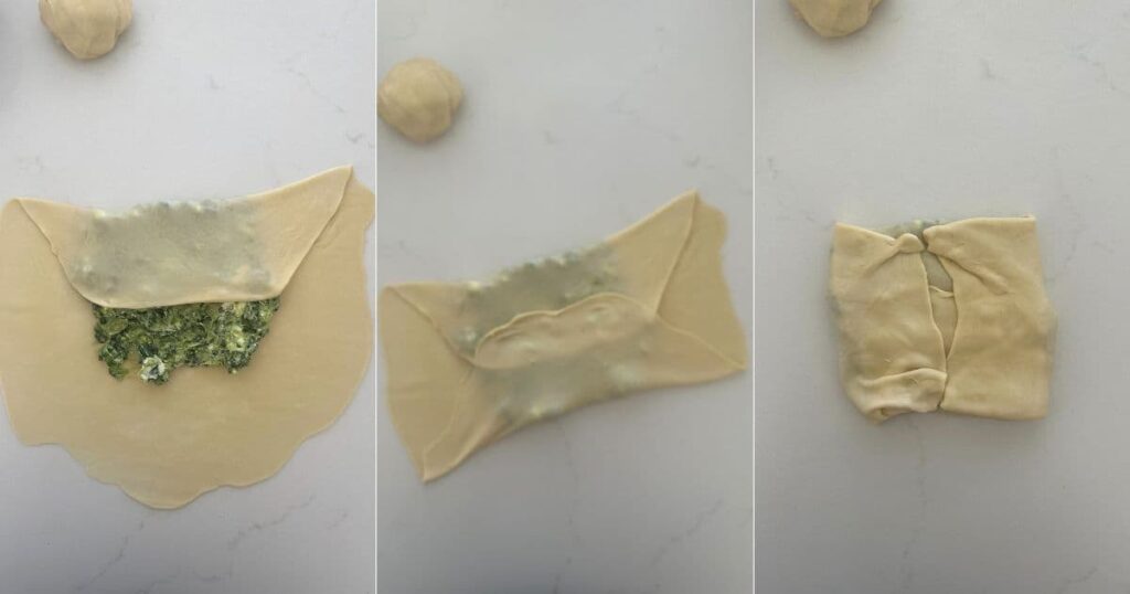 - Now fold the edges of the dough in so that the gozleme forms a rough square (or rectangle). These can be as rustic as you like!