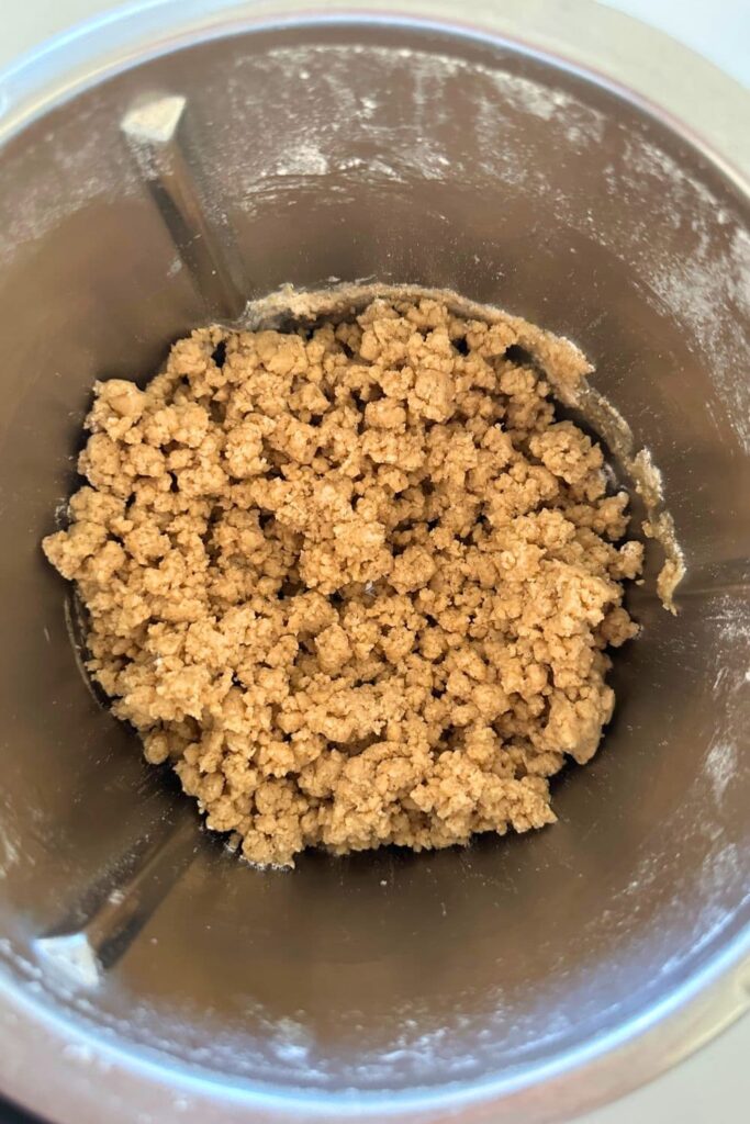 When you tip the dough out of the food processor, it will be very crumbly and like sand so you'll need to push it all together to form a more cohesive dough 🙂 Enjoy xx