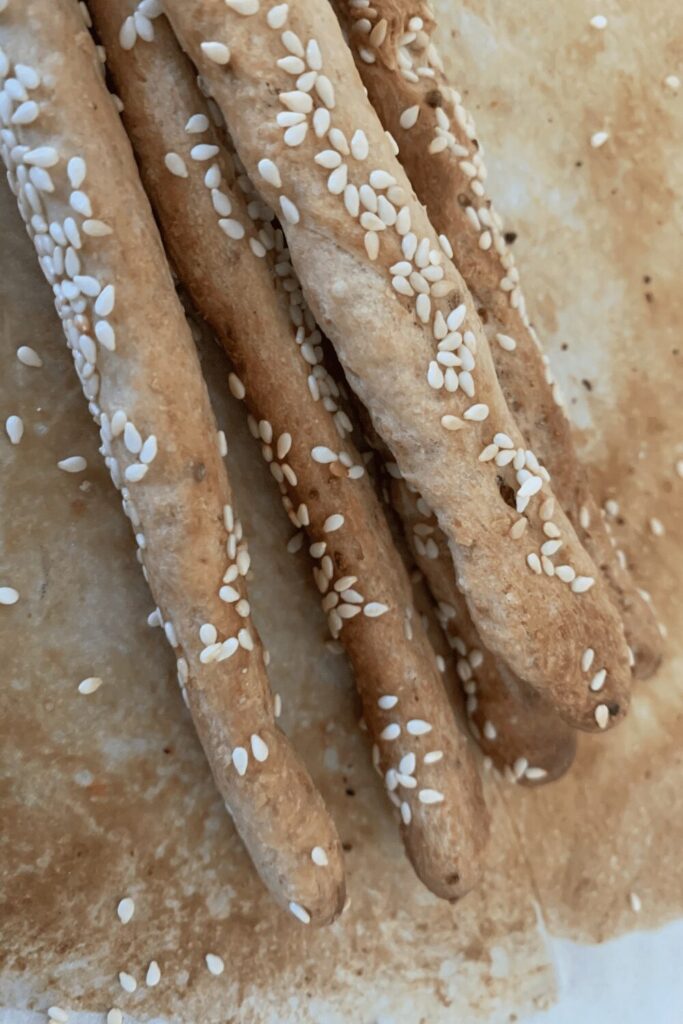 - Bake at 350F/180C for around 25 minutes or until grissini are golden brown and cripsy.