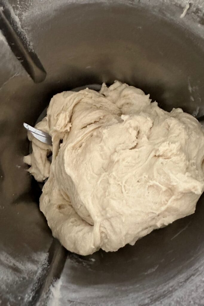 - Tip the dough out onto a clean surface and knead it until the dough is soft and supple. You can do this step in a stand mixer or Thermomix if you prefer. It will take around 10 minutes to knead by hand and around 5 minutes in a stand mixer.