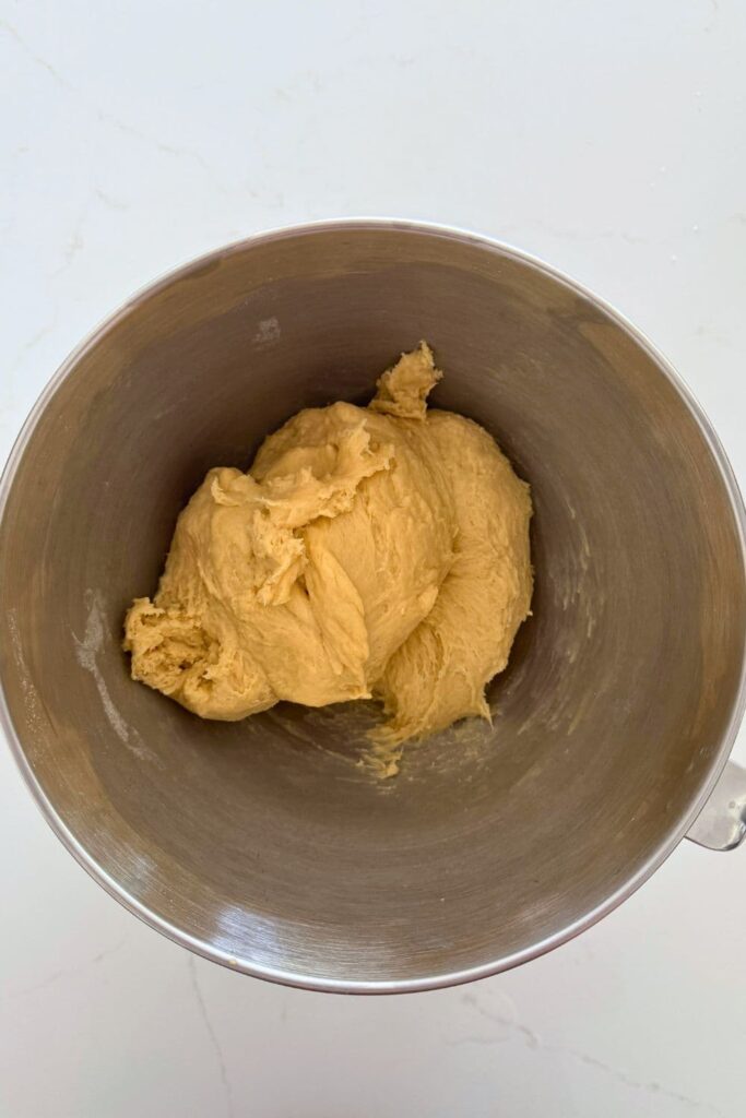 - Using the dough hook attachment on your stand mixer, bring the ingredients together into a cohesive dough. Let it sit for around 30 minutes.