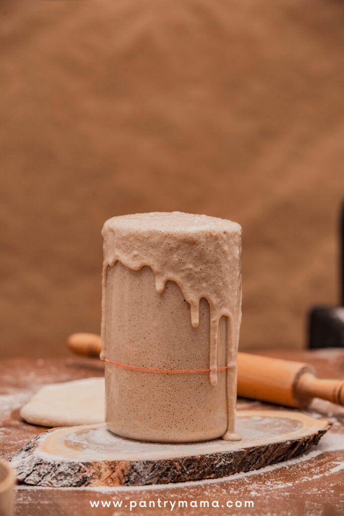 To avoid a spill like this, always use a sourdough starter jar that is 3 to 4 times bigger than your starter.