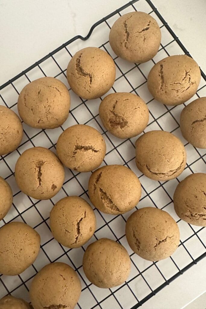 Generous Powdered Sugar Coating: Roll the warm cookies generously in powdered sugar. This not only adds a festive touch but also contributes to the traditional appearance and sweetness of Pfeffernusse cookies.