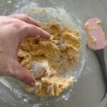 - Add sourdough discard, flours, pumpkin, butter, salt and parmesan to a mixing bowl and bring the ingredients together to form a shaggy dough.
