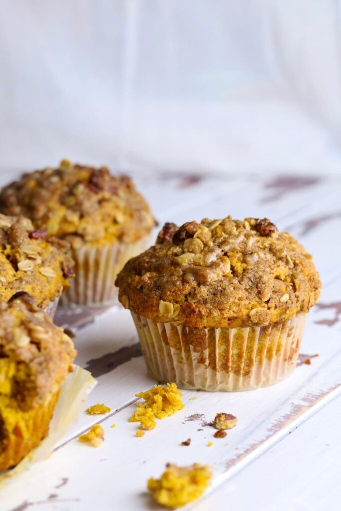 - Add some pumpkin seeds (pepitas) to the dry ingredient mix for a pumpkin crunch! They also add a seasonal flair when added to top of the muffins (either along with the streusel or instead of it).